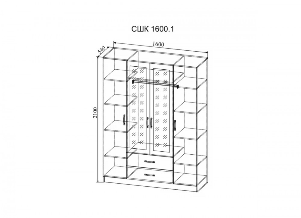 | Размеры В*Ш*Г, мм | 2100х1600х540 |