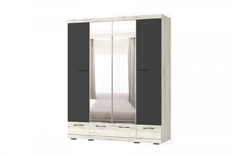 СОНАТА ШСЗ-1800 Шкаф 4дв (2 зерк.), 3ящ (ш1800*г570*в2202мм), ЛДСП дуб крафт белый-антрацит в Тюмени