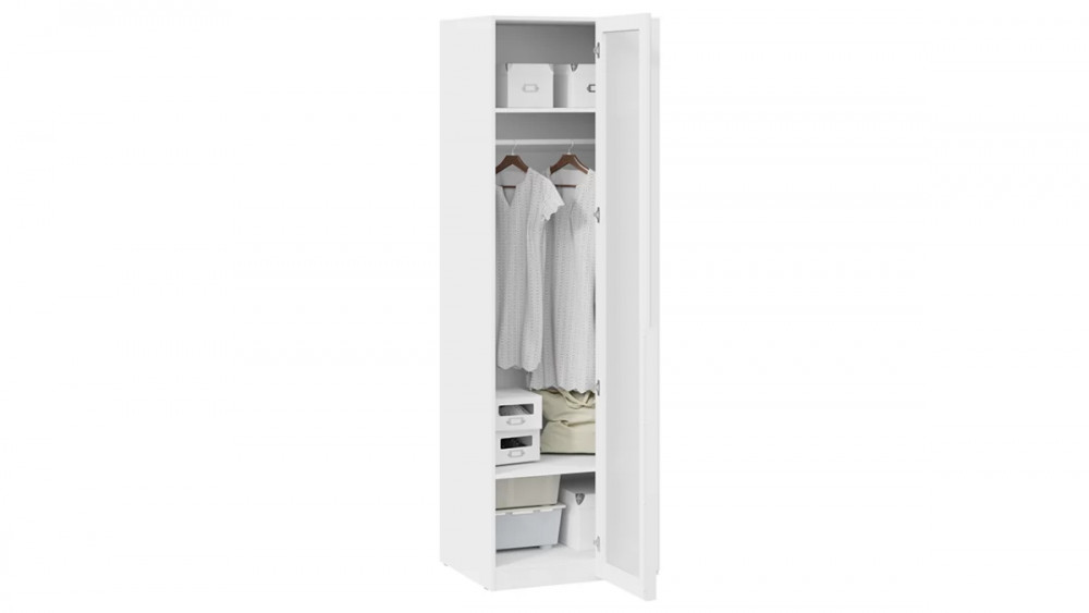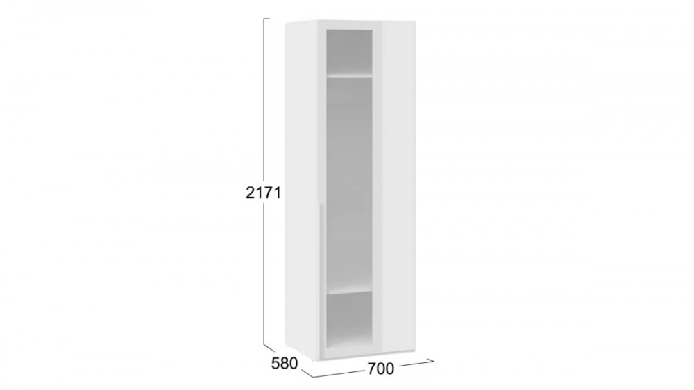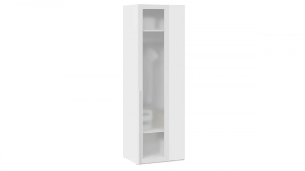 Шкаф угловой (580) с 1 дверью со стеклом «Порто» Белый Жемчуг/Стекло сатин белое в Тюмени