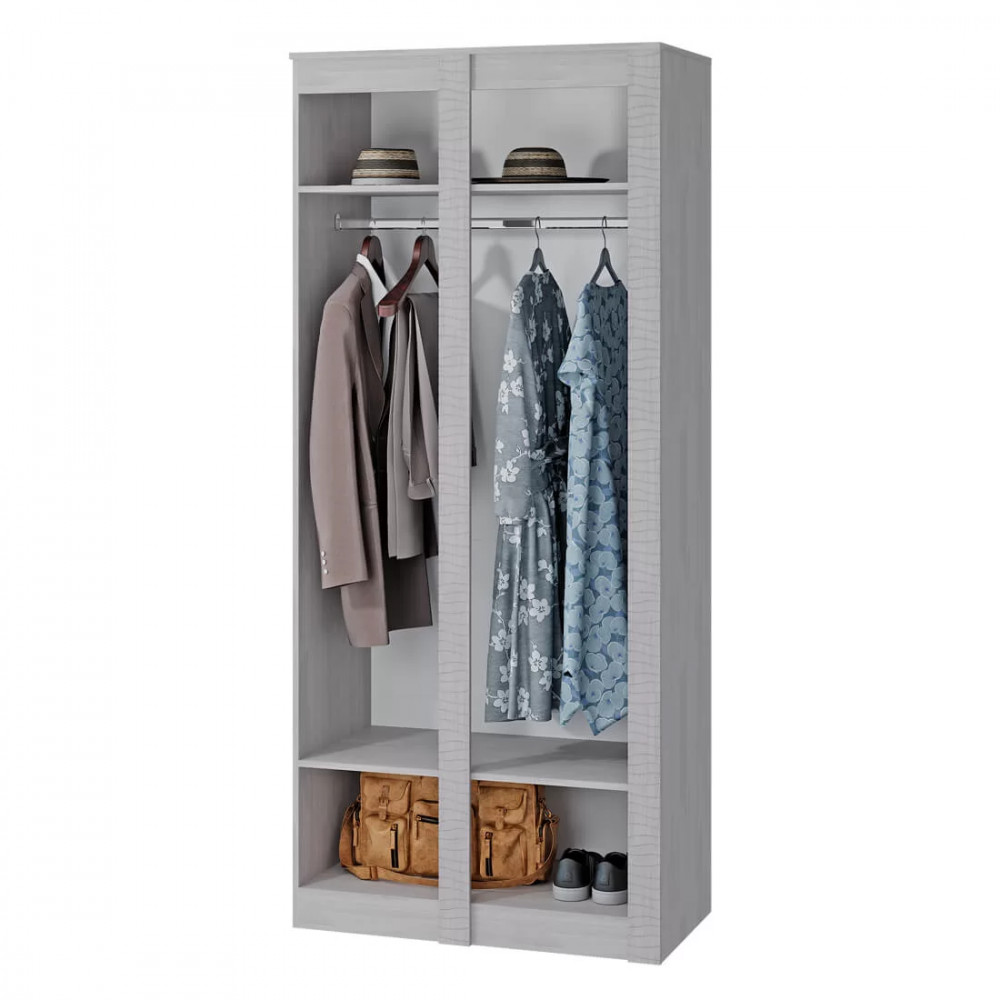 -шкаф содержит отделения с хромированной штангой для плечиков, а также верхние и нижние ниши,