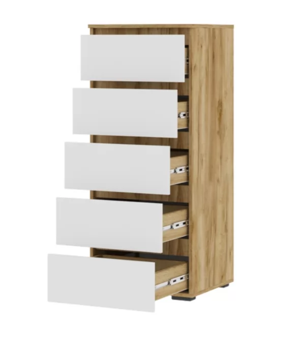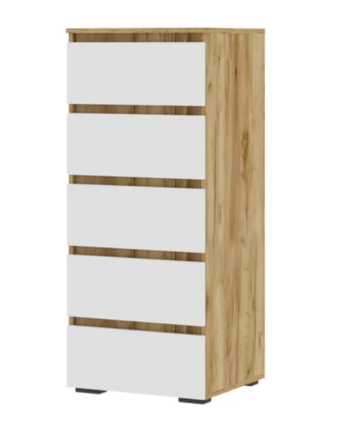 ХЕЛЕН КМ03 Комод 5ящ. (ш502*г460*в1188мм), Дуб Крафт Золотой/Белый в Тюмени