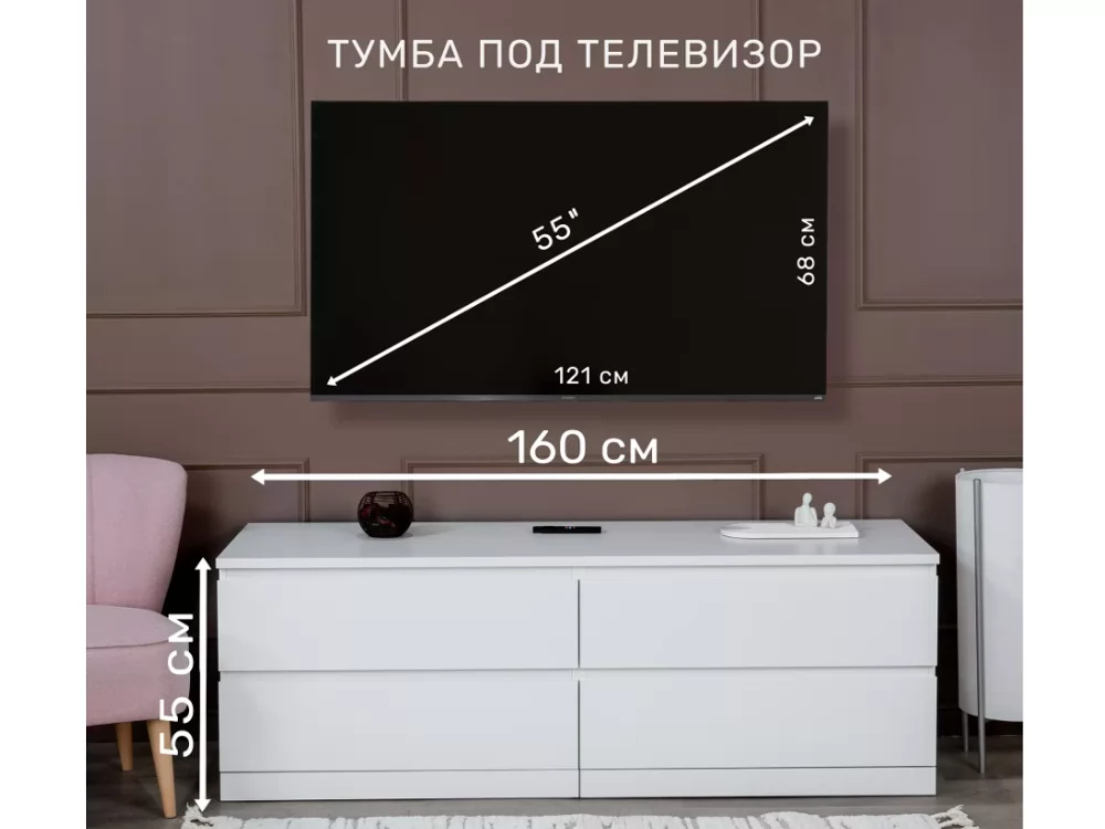 Комод 160x55x48 Варма Прайм 4Д белый в Тюмени