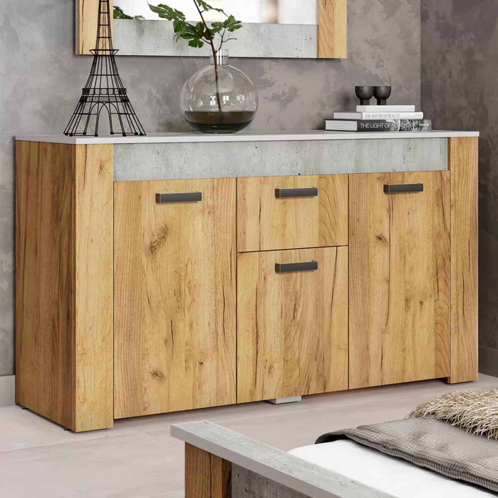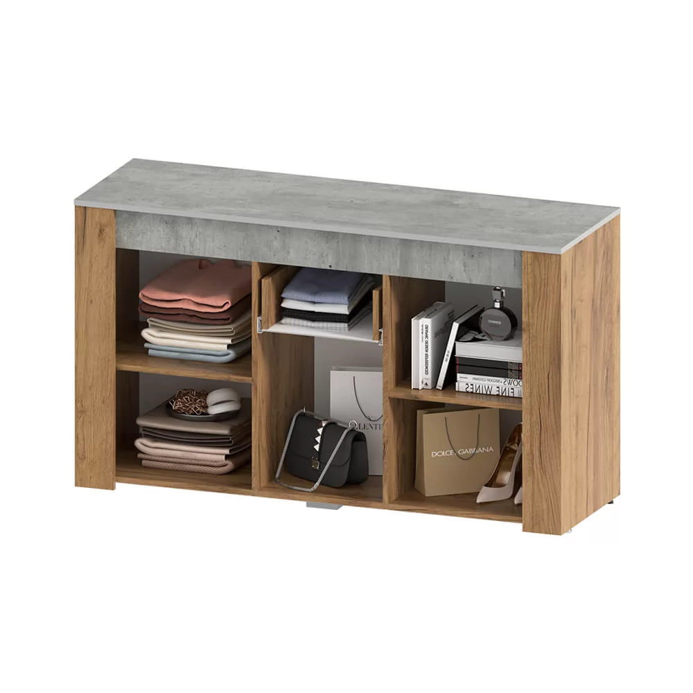 -использование в дизайне цвета бетон придает комоду брутальности.