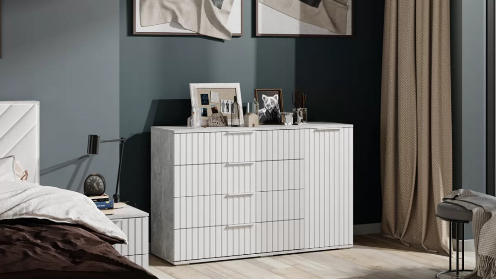 Комод комбинированный «Хилтон» Ателье светлый, Белый матовый в Тюмени
