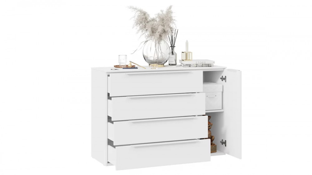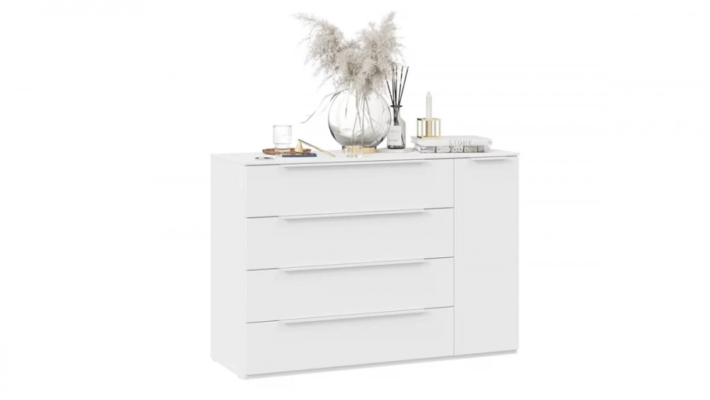 Комод комбинированный «Порто» Белый Жемчуг, Белый софт в Тюмени