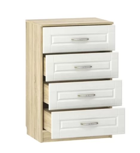 Комод Оливия НМ 040.38 X имеет компактные габариты и не займет много места в детской или спальне. Четыре вместительных ящика позволят рационально разместить внутри модуля постельные принадлежности и белье.