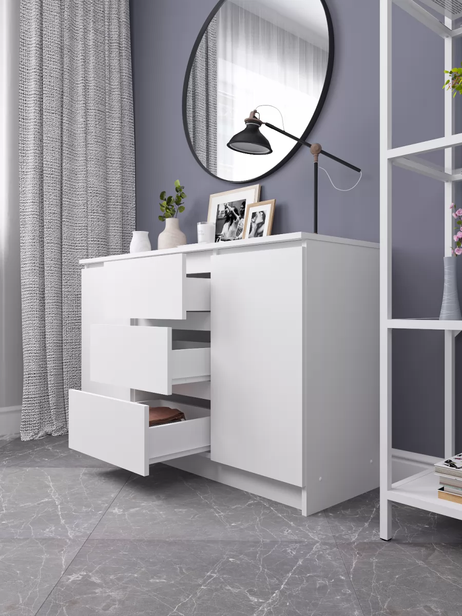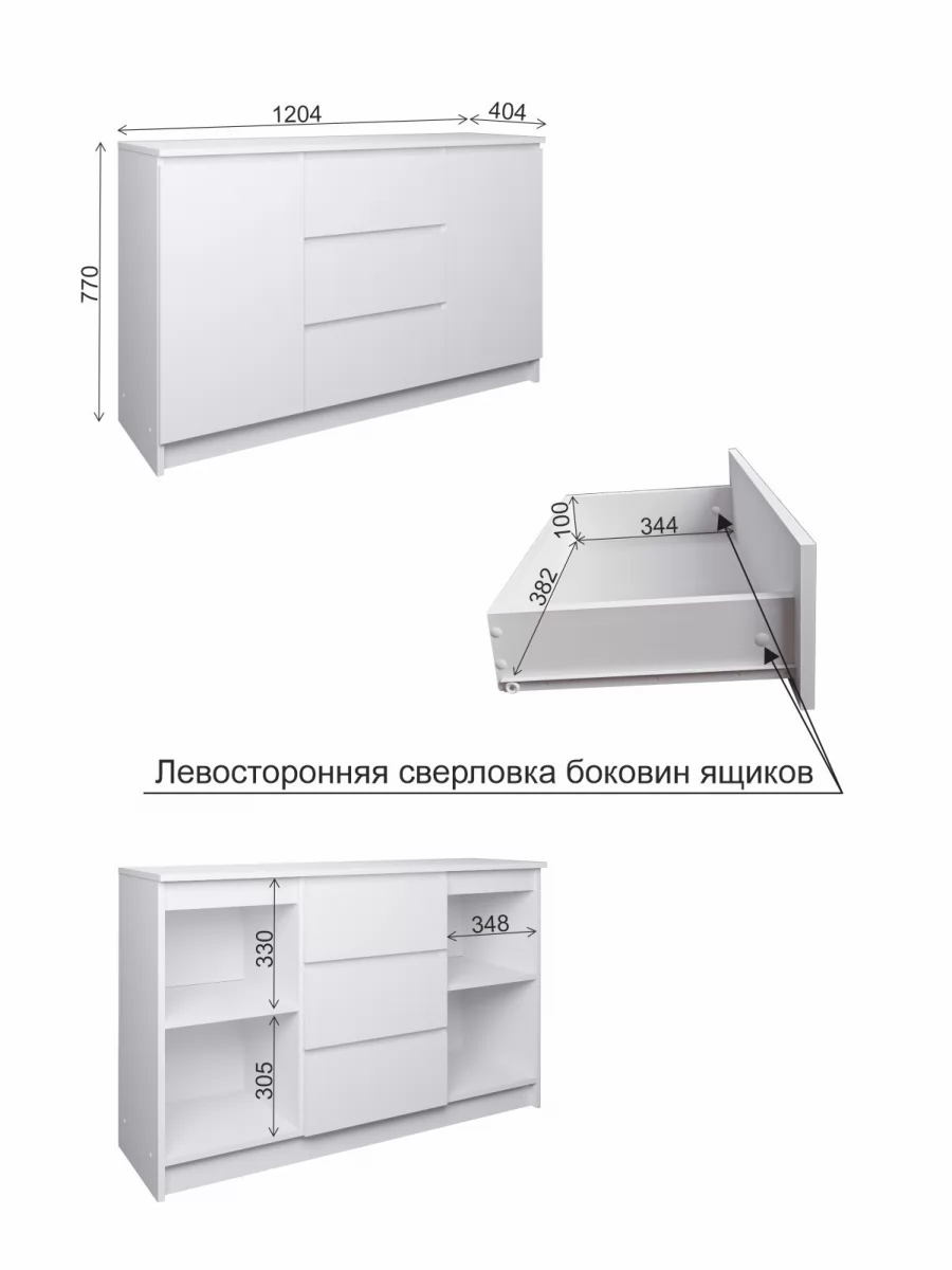 МОРИ МК1200.3 Комод 2дв., 3ящ. (ш1204*г404*в770мм), ЛДСП Белый (МП/3) в Тюмени