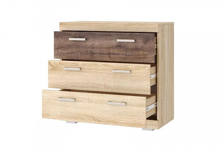 СОНАТА КС-900 Комод 3ящ. (ш900*г450*в870мм), ЛДСП дуб сонома-дуб сакраменто в Тюмени
