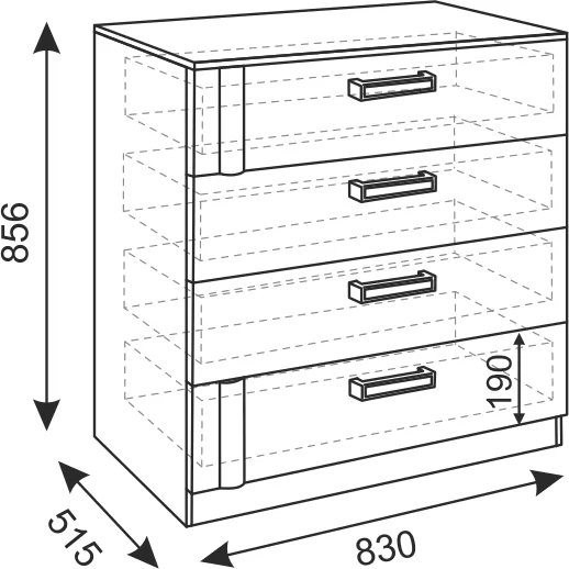 - Комод имеет 4 выдвижных ящика.
