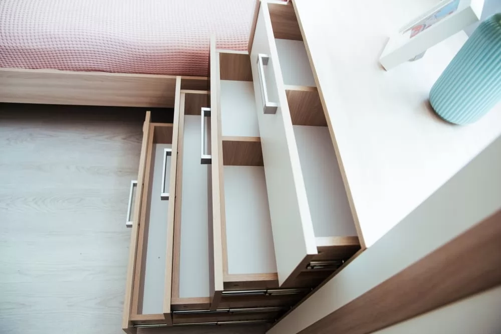 - Ящики на шариковых направляющих полного выдвижения.