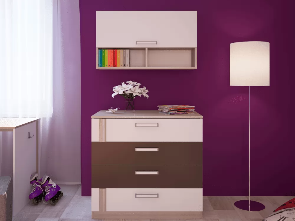 - Комод совпадает по ширине с навесной Полкой 2 М11 и составляет вместе с ней отличное функциональное пространство для хранения вещей.