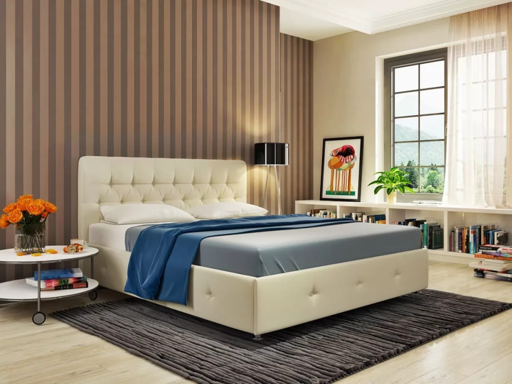 Интерьерная кровать Афина подобна мудрой красавице сочетает в себе самое лучшее - элегантность и надежность. Данная модель кровати завоевала огромную любовь среди покупателей благодаря своему роскошному виду и возможности подобрать обивку, подходящую для Вашего интерьера. Кровать с мягким изголовьем станет художественным акцентом в общей гармонии декора спального помещения, она идеально подойдет людям, которые ценят комфорт и обстоятельность во всем.