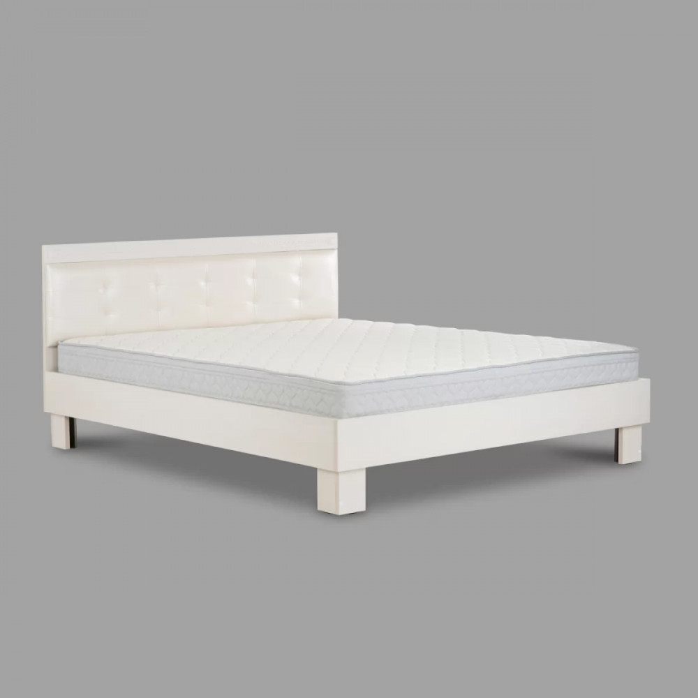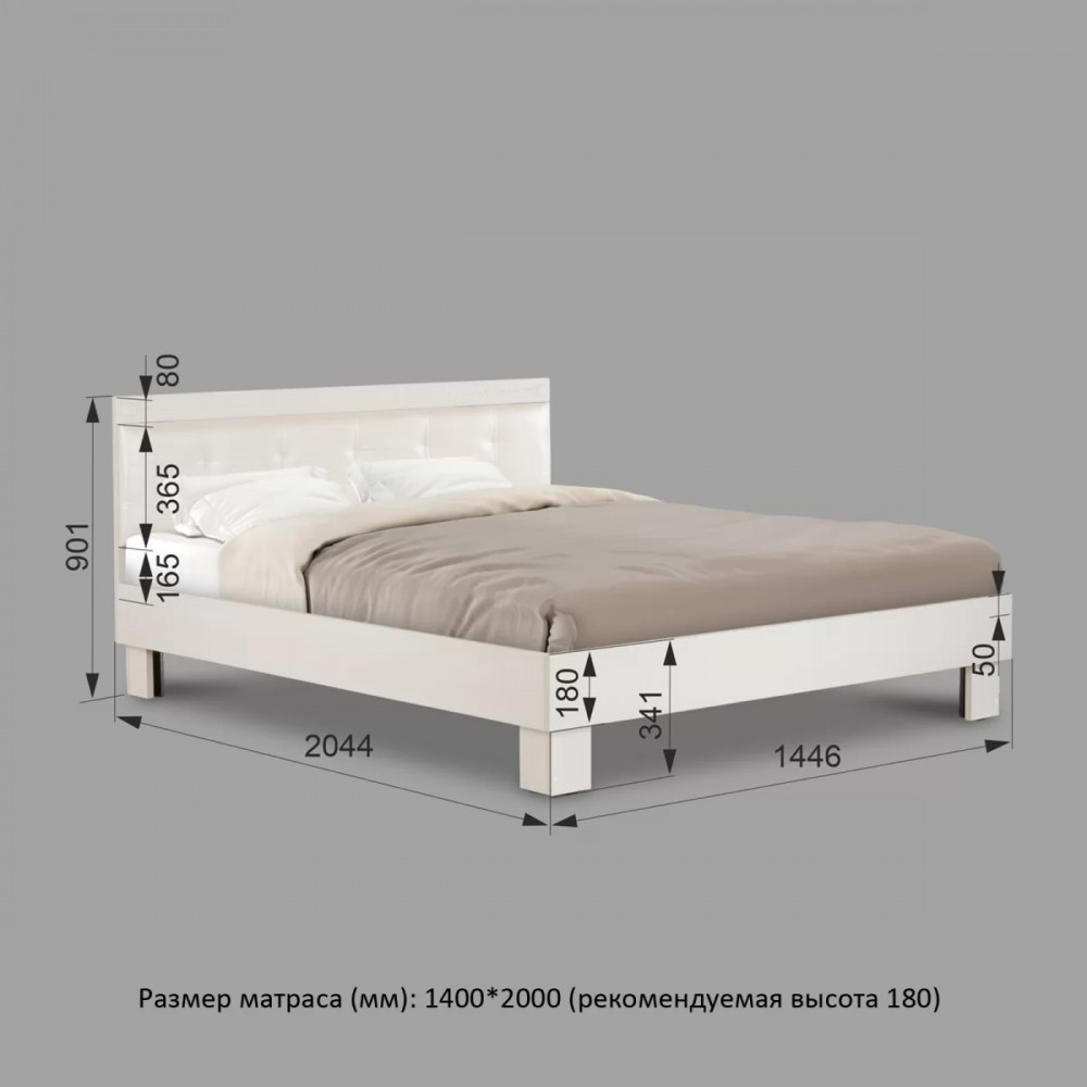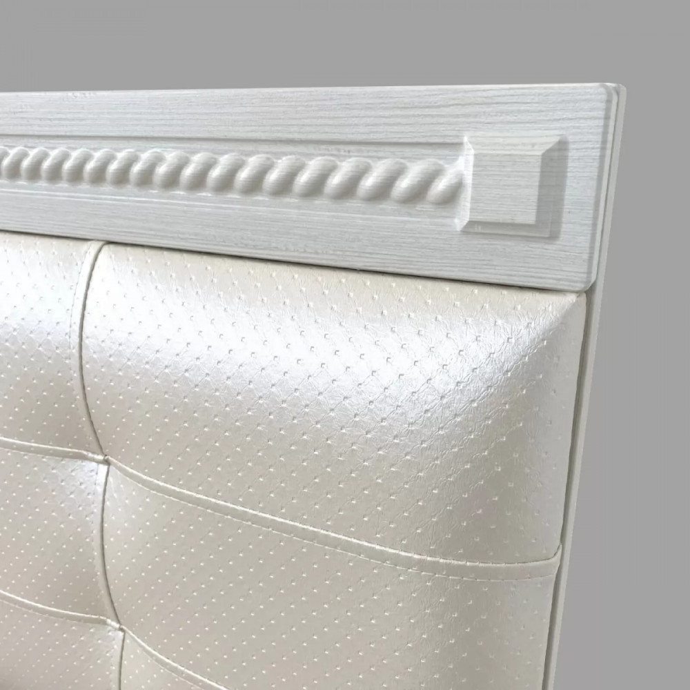 Двуспальная кровать №14М "Азалия" имеет спальное место 140*200 см. Мягкий элемент изголовья выполнен из экокожи "Пунто" белого цвета. Изголовье декорировано планкой МДФ с фрезеровкой.