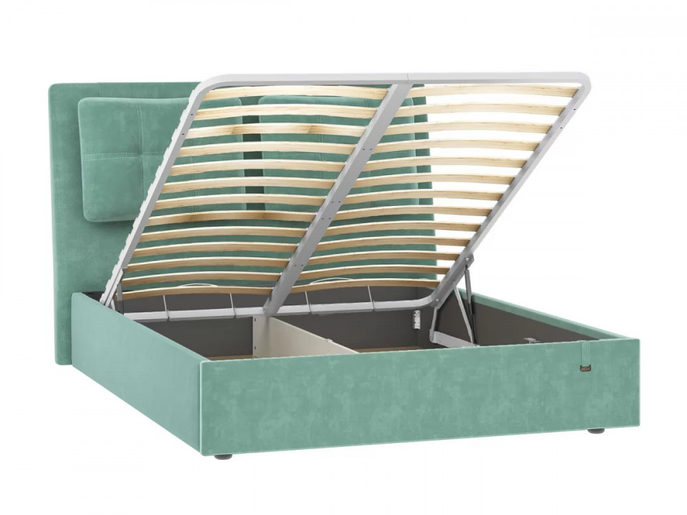 Подъемный механизм легок в управлении, а вместительный короб внутри кровати подойдет для хранения подушек, белья и других вещей.