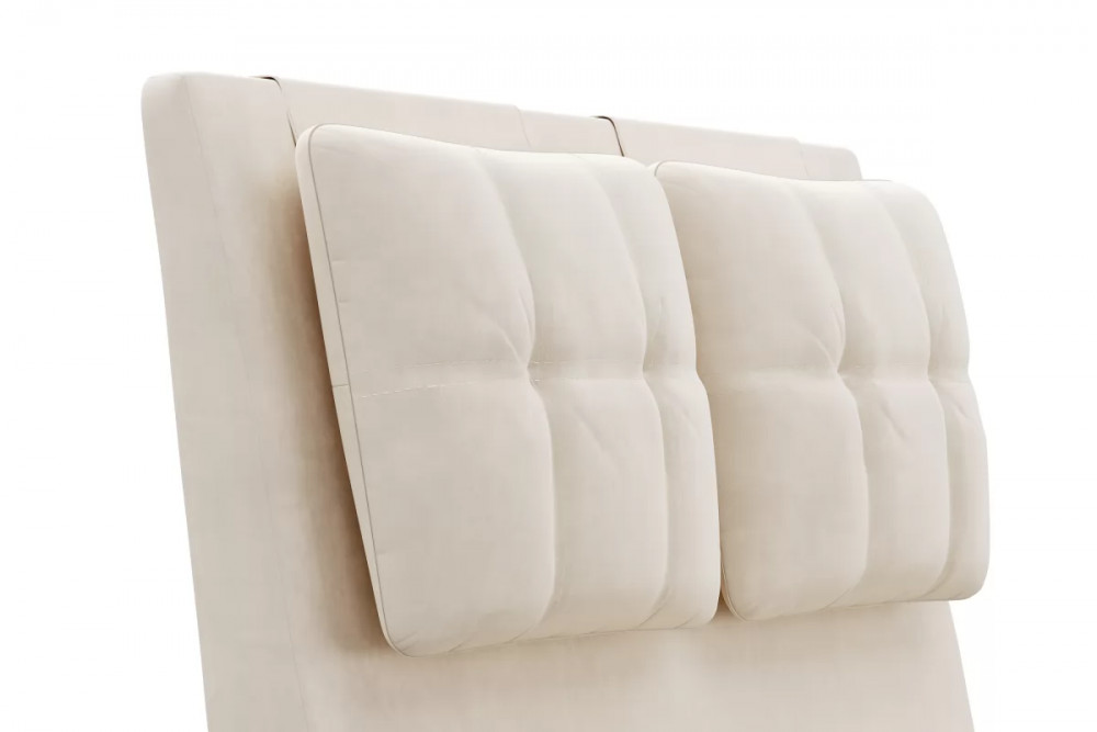 Кровати выполнены в нейтральных и в ярких тканях велюр, что позволяет подобрать подходящий вариант почти под любой интерьер. В качестве декора применяются декоративные подушки на изголовье.