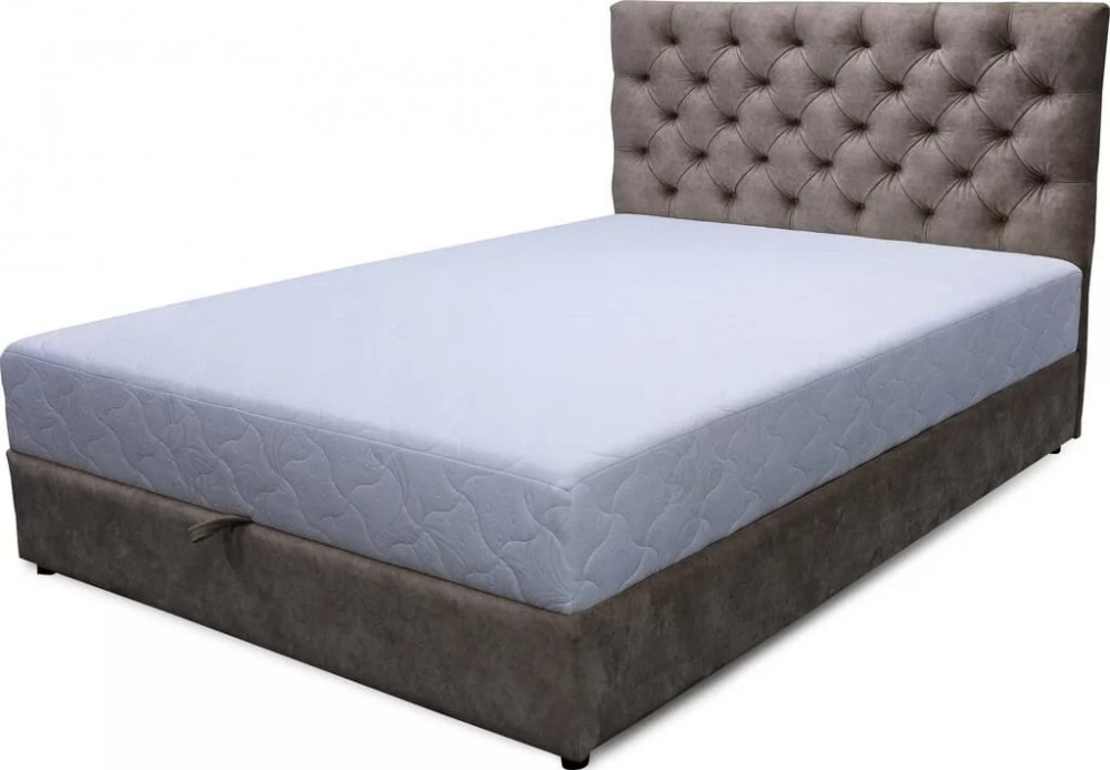ХарактеристикиОбщий габарит-2050х1450Спальное место-1400х2000Наполнение-НПБ 120 (спальное место - 609пружин)Изголовье: каретная стяжка.Деревянный каркас,Подъёмный механизм (газлифты)Бельевой ящик- ЛДСП.Матрас: несъёмный, жёсткий(кокос 10мм). Задняя спинка не в ткани Кокос