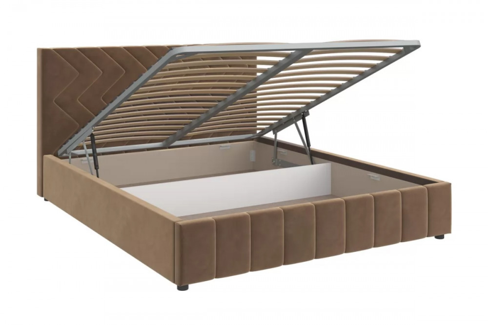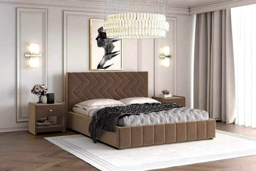Кровать - дизайнерский центр спальни. Она должна быть эффектной и в то же время лаконичной и удобной, яркой, но в мягкой цветовой гамме. Всем этим требованиям соответствует двуспальная кровать Нельсон - идеальное спальное место. Ее геометрический узор на спинке и изножье придает декору строгости и лаконичности, а мягкая обивка - стиля и роскоши. Все элементы кровати произведены из высококачественных материалов, металлокаркас с подъемным механизмом упростит эксплуатацию кровати. Для расцветки дизайнеры выбрали мягкие натуральные оттенки, которые идеально впишутся в любой интерьер. Кровать Нельсон станет украшением любой комнаты - будь то просторная спальня в загородном доме или небольшое помещение в обычной квартире.