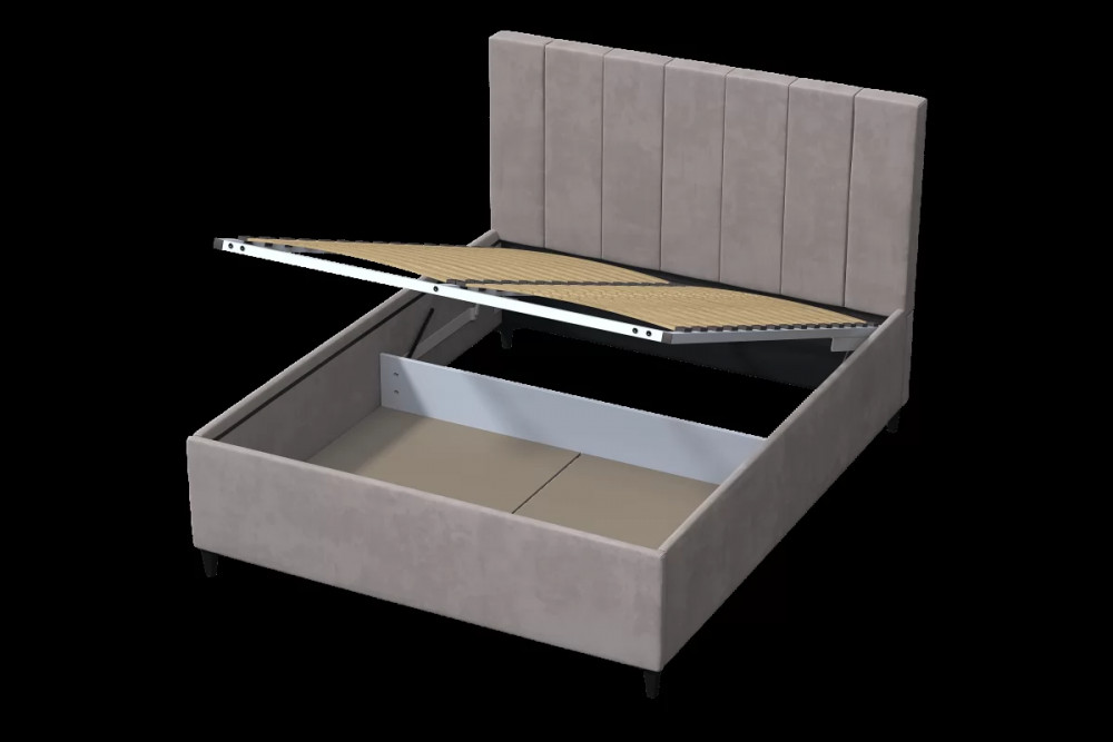 Подъемный механизм на газовых лифтах надежен и безопасен, он плавно и бесшумно поднимает матрас, позволяя открывать ящик без особых усилий.