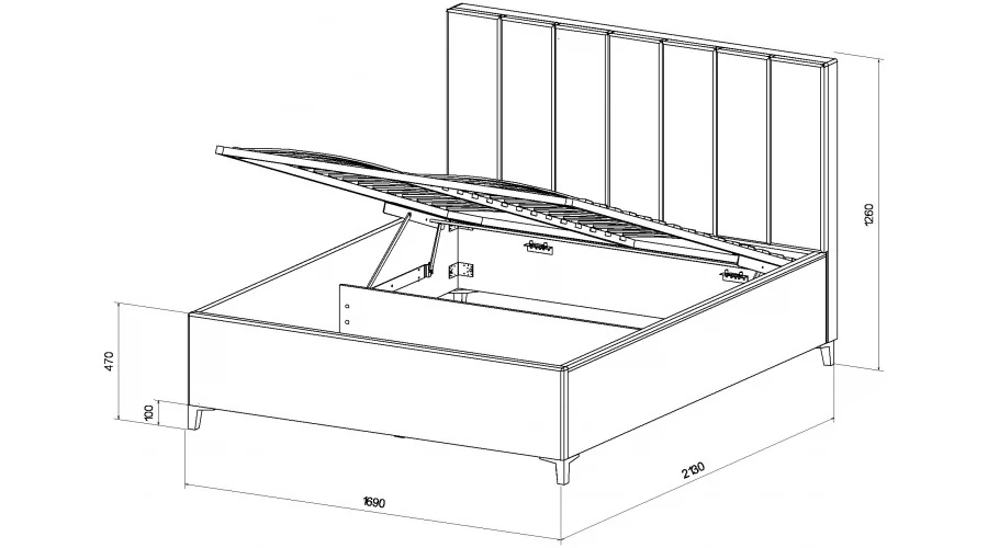- Размер под матрас 1600 х 2000 мм.