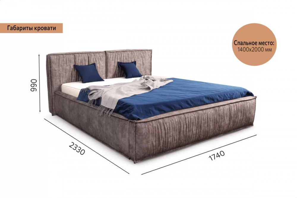 Кровать с ортопедическим основанием Чикаго 1400 стандарт Вариант 2, Аликанте коричневый в Тюмени
