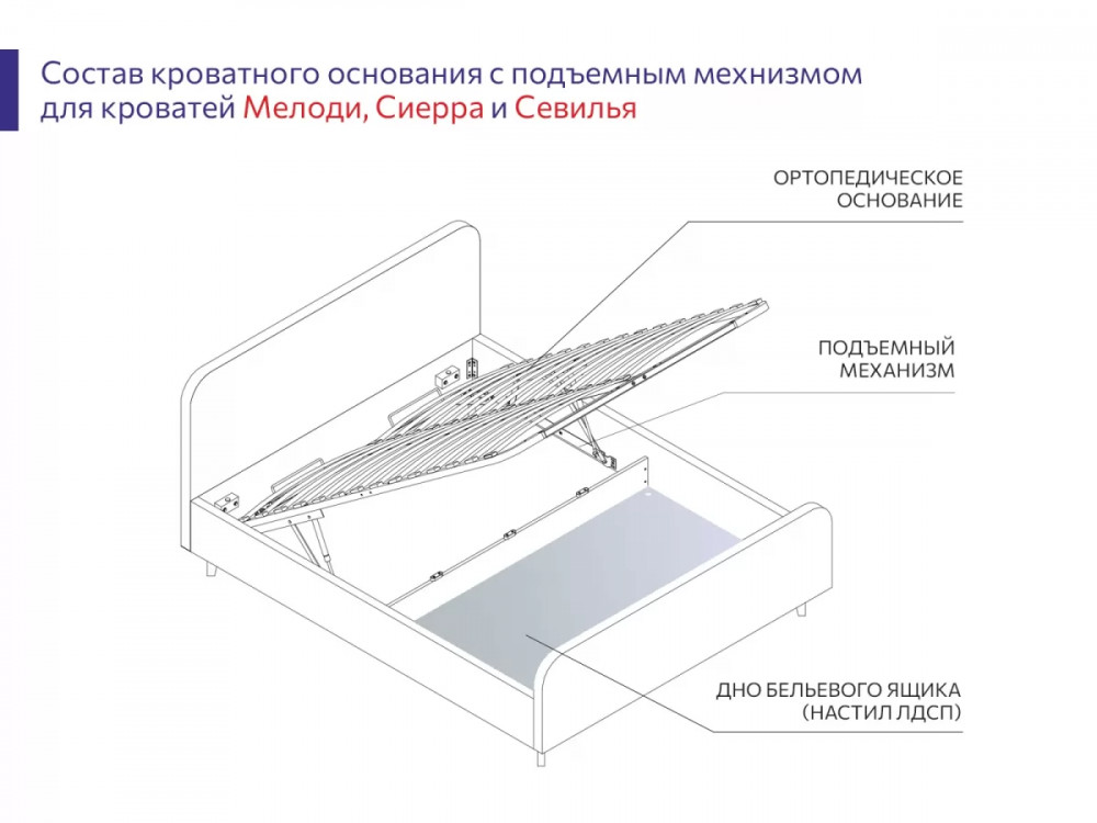 | Основание | Ортопедическое с подъемным механизмом + настил (дно), Металлокаркасное (ортопедическое) |