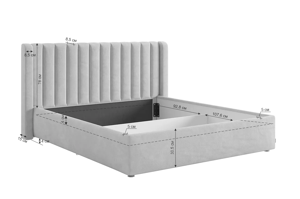 Главной особенностью этой кровати является ушки у изголовья, которые не только придают ей модный вид. Кровать имеет размеры 1885х2130х1120, что позволяет вам свободно растянуться и найти идеальное положение для отдыха. Независимо от того, какой способ сна вам удобен, Ева подстроится под ваши предпочтения.