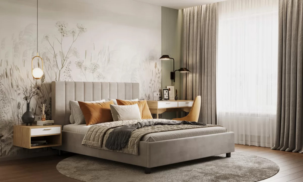 Кровать имеет опцию подъемного механизма с вместительным полноразмерным коробом.