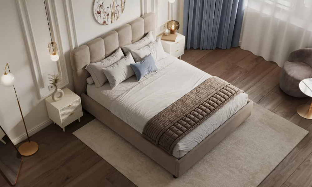 Кровать имеет опцию подъемного механизма с вместительным полноразмерным коробом.