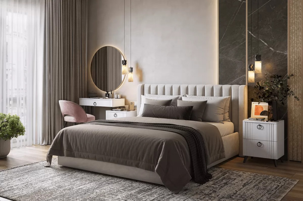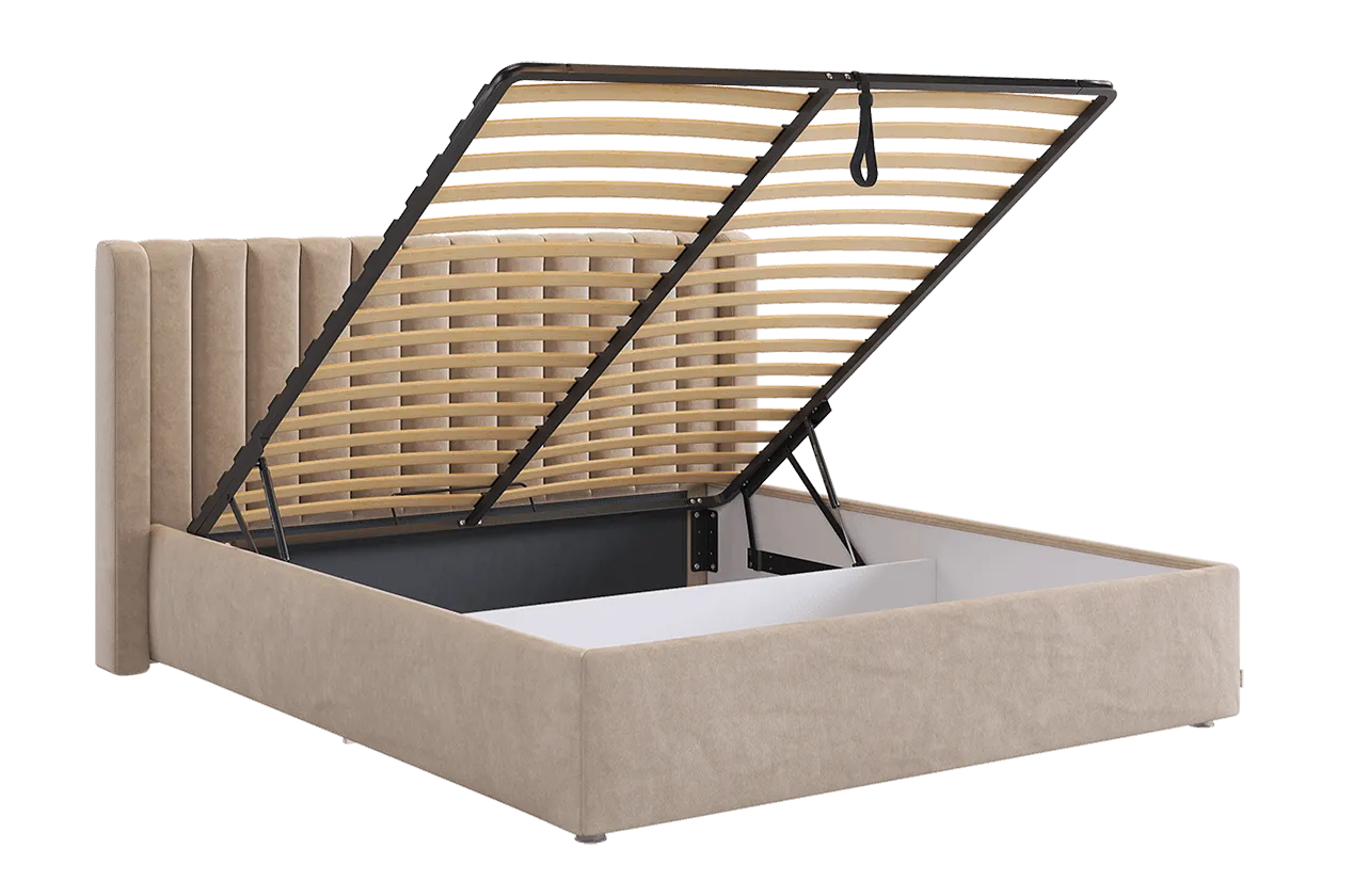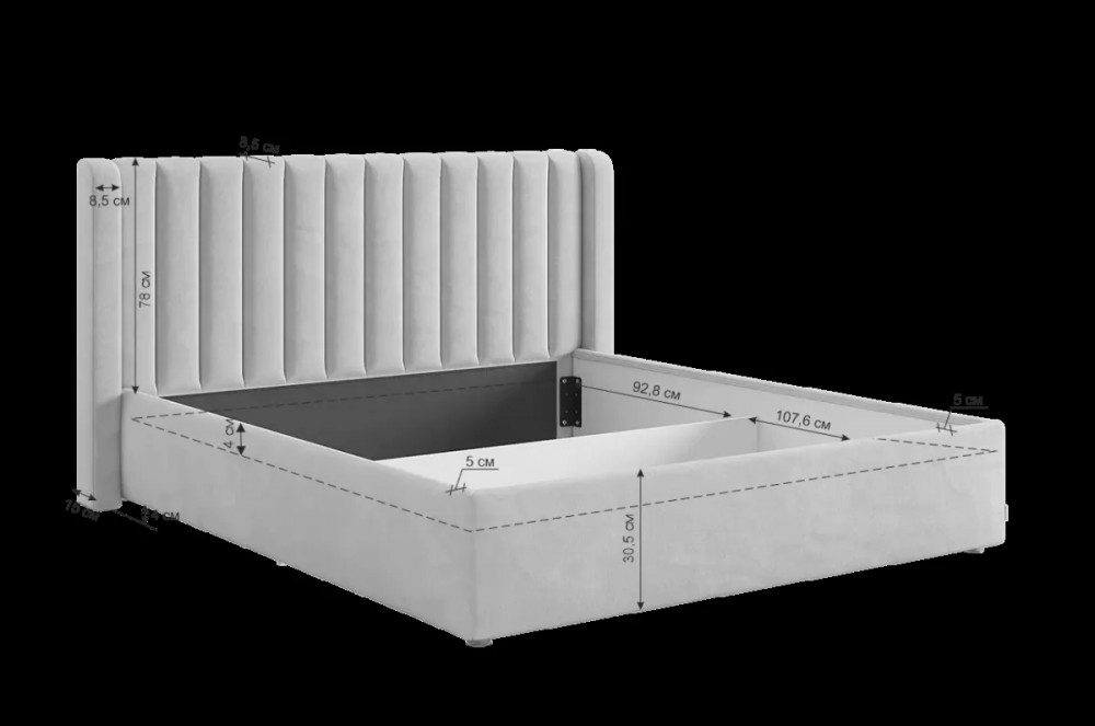 В комплект кровати входит основание с подъемным механизмом, что позволяет вам использовать пространство под кроватью для хранения одежды, постельных принадлежностей и других вещей. Это практичное решение, позволяющее оптимизировать пространство и поддерживать порядок в спальне.