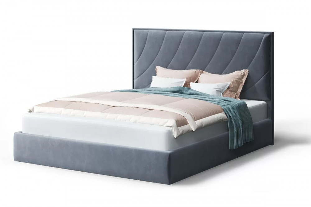 Кровать СОФИЯ 2000*1600мм (без опор), велюр Бренди лайт 28 (серый), (б/основания, б/матраса) в Тюмени