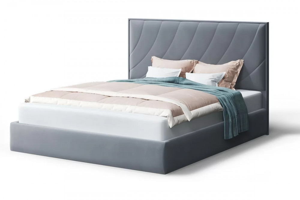Кровать СОФИЯ 2000*1800мм (без опор), велюр NEO 25 (серый), (б/основания, б/матраса) в Тюмени
