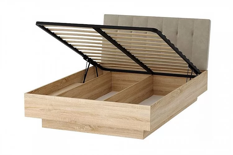 СОНАТА КРС-1400 Кровать с ПМ (с/м 1400*2000 мм), велюр SAND (бежевый)/ЛДСП дуб сонома в Тюмени