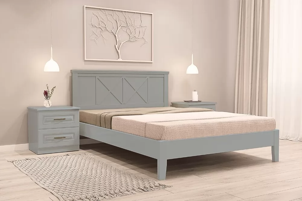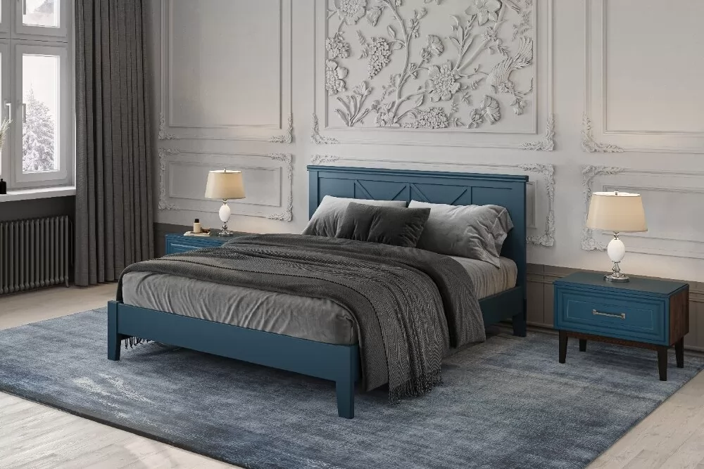 Кровать из массива "Грация-2" (антрацит и сапфировый) с ортопедическим основанием в Тюмени