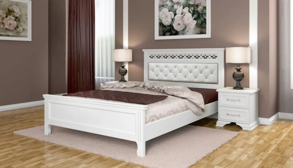 Кровать из массива Грация античный белый с ортопедическим основанием в Тюмени