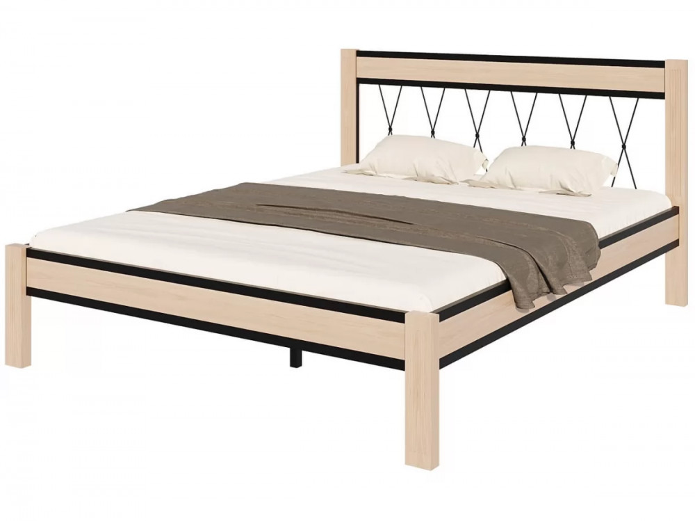 Кровать "Кантри" КМД23 ЧЁРНЫЙ-НАТУРАЛЬНЫЙ (1600*2000) (ножки-натуральный) в Тюмени