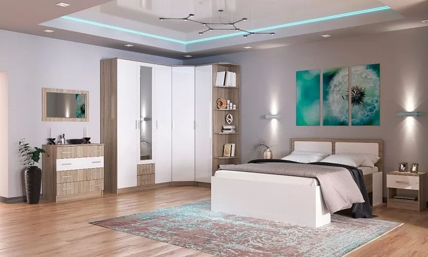 БЕАТРИС КР 1600 Кровать (с/м 1600*2000мм), дуб сонома/белый глянец НАСТИЛ в Тюмени