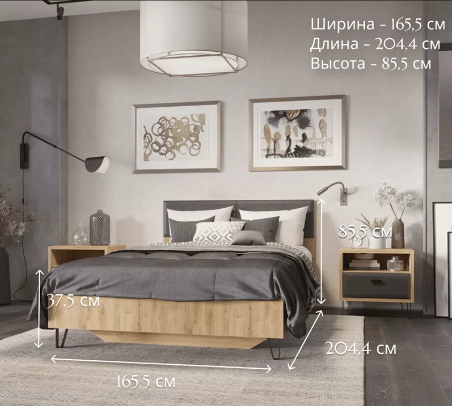 GRACE кровать LOZ160х200 с подъемным механизмом (Дуб наварра/ Графит) в Тюмени