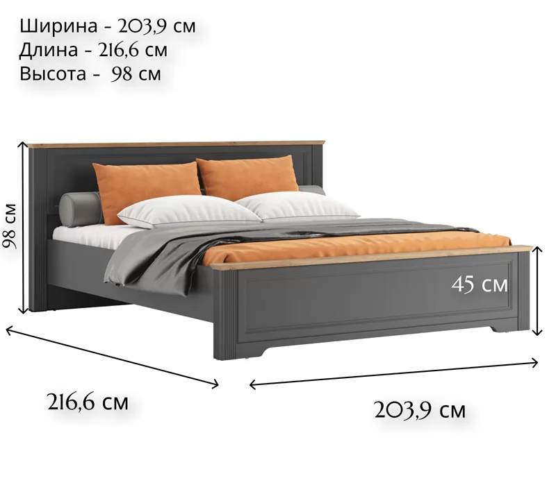Просторная двуспальная кровать обладает удобным изголовьем. Устойчивые ножки гарантируют прочность конструкции, а приподнятое основание облегчает уборку под кроватью. Благодаря своему дизайну подойдет для спальных комнат в стиле неоклассика и темный скандинавский. Декоративная планка из МДФ подчеркивает индивидуальность и стиль.