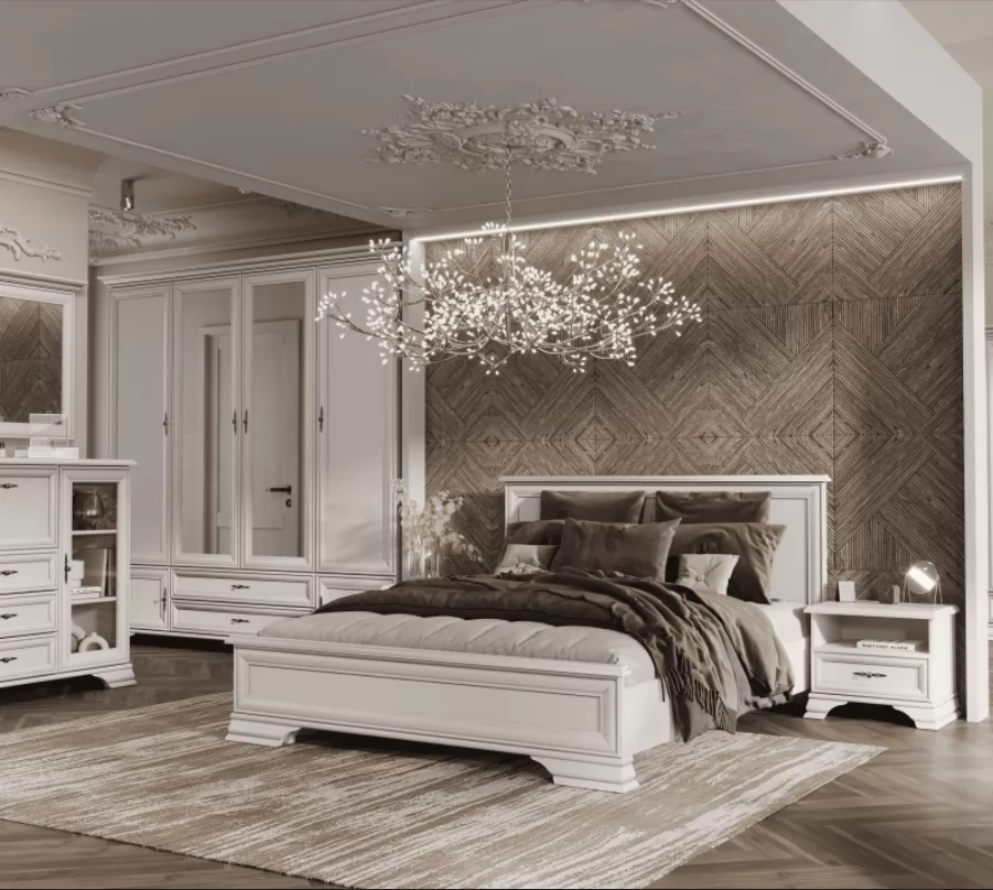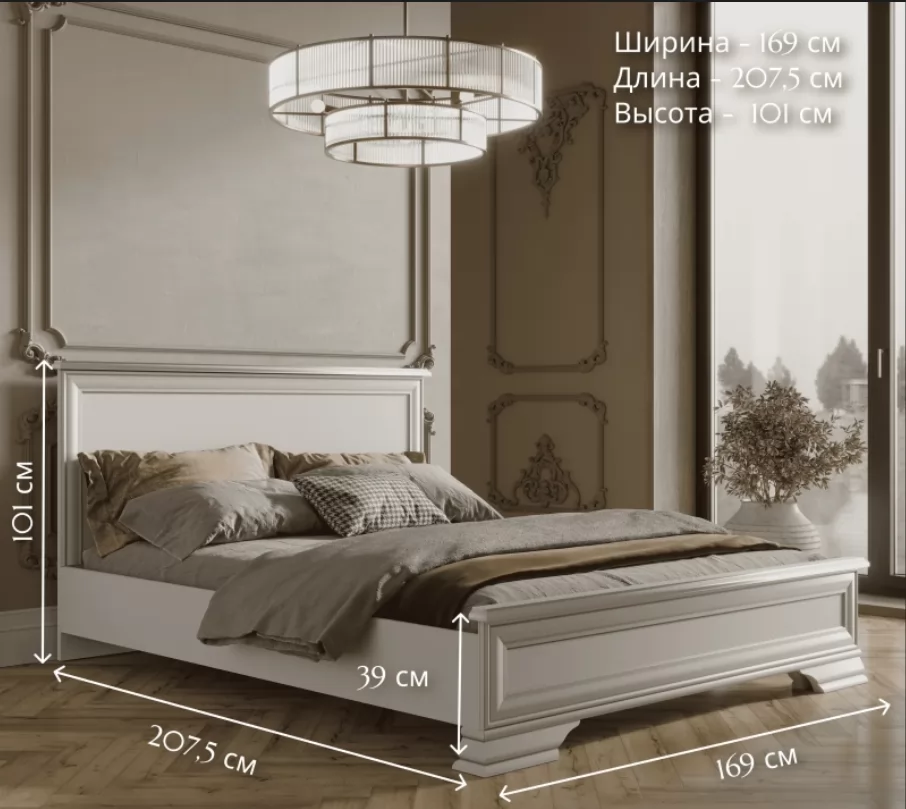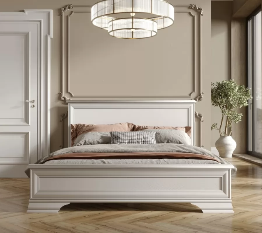 Рамка из МДФ на изголовье и изножье придает кровати индивидуальности, а светлый цвет фасада делает эту модель универсальной для многих интерьерных решений.