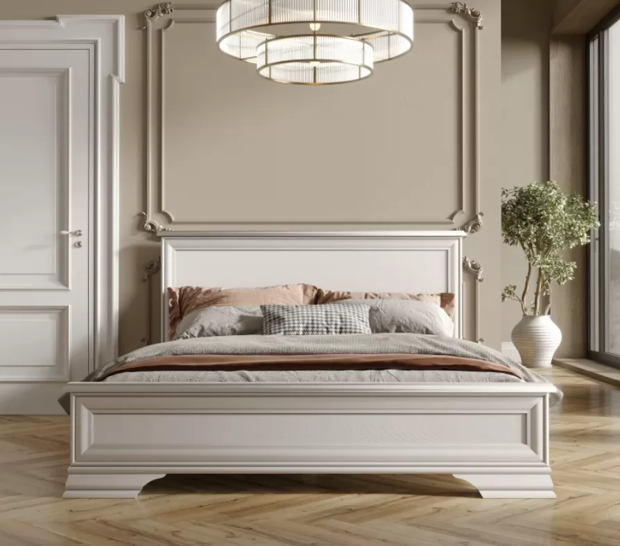 Кровать имеет ортопедическое основание, что гарантирует оптимальную поддержку тела во время сна. Рамка из МДФ на изголовье и изножье придает кровати индивидуальности, а светлый цвет фасада делает эту модель универсальной для многих интерьерных решений.