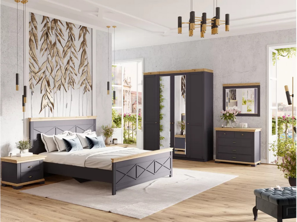 Кровать 1600 1С Лиана-1 с основанием Дуб Крафт Золотой/Графит в Тюмени