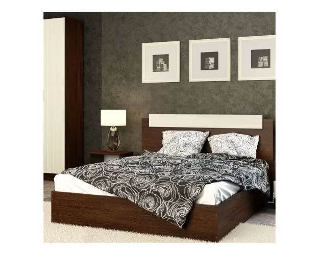 Двуспальная кровать имеет два варианта цветовых решений: Венге + сосна Лоредо/ ясень Шимо тёмный + ясень Шимо светлый.
