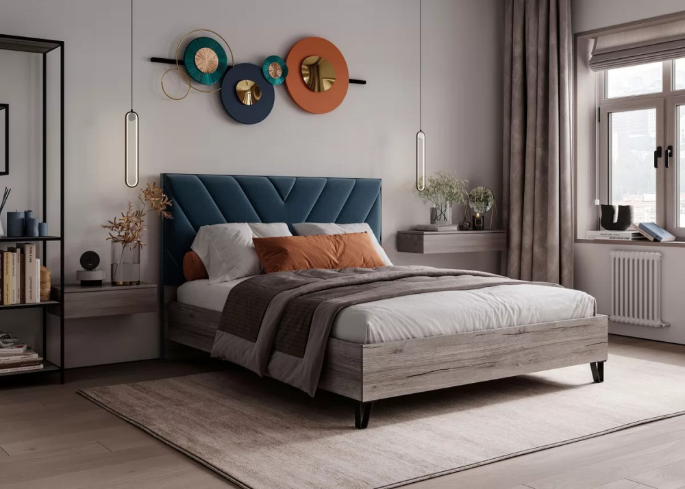 Кровать Аделия с мягким изголовьем, 1600*2000 мм, синий в Тюмени