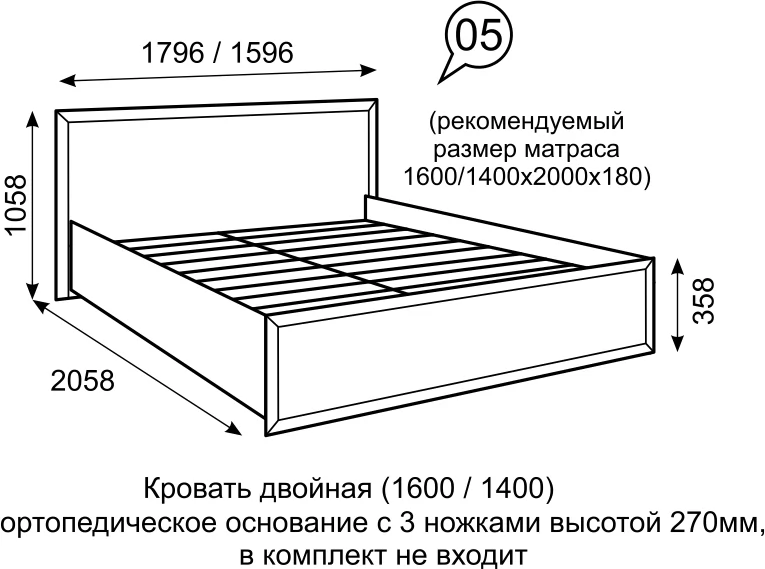 Кровать двуспальная 1600 мм (с ортопедическим основанием) «Венеция» №5 в Тюмени