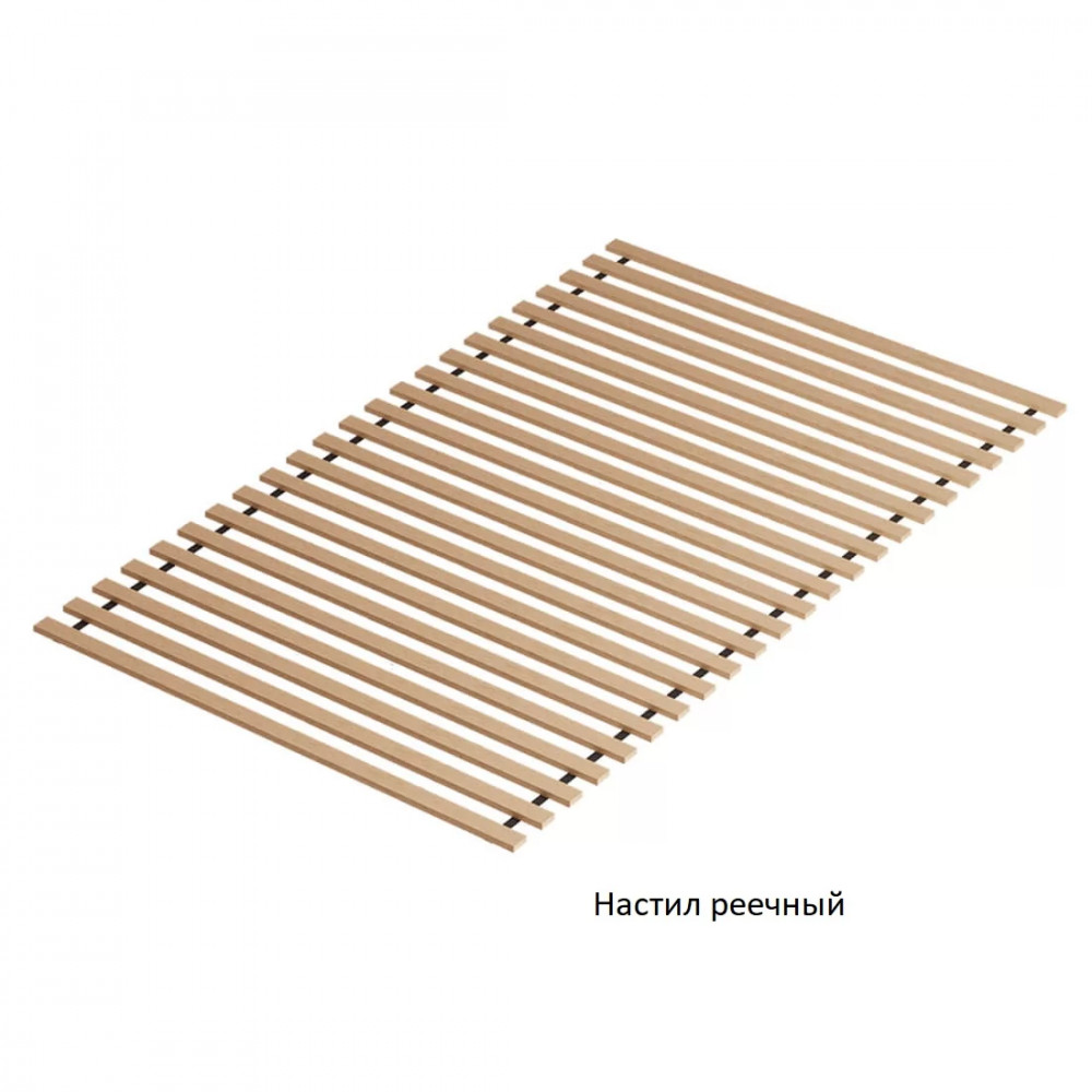 Настил реечный – это рейки, скреплённые между собой лентой, сделаны из прочной берёзовой фанеры толщиной 12 мм. Благодаря своей конструкции давление равномерно распределяется по всей площади спального места, обеспечивая качественную вентиляцию матраса со всех сторон, что гарантированно продлит его ортопедические характеристики и срок эксплуатации. Максимальная нагрузка на спальное место: 120 кг.