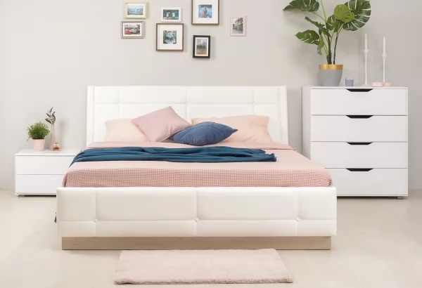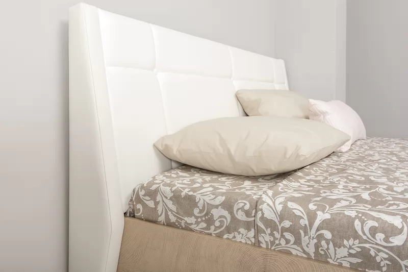 - Мягкое изголовье изголовье кровати установлено с небольшим наклоном, что добавляет возможность не только лежать в кровати, но и комфортно сидеть, как на диване.