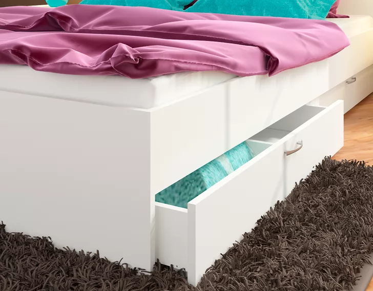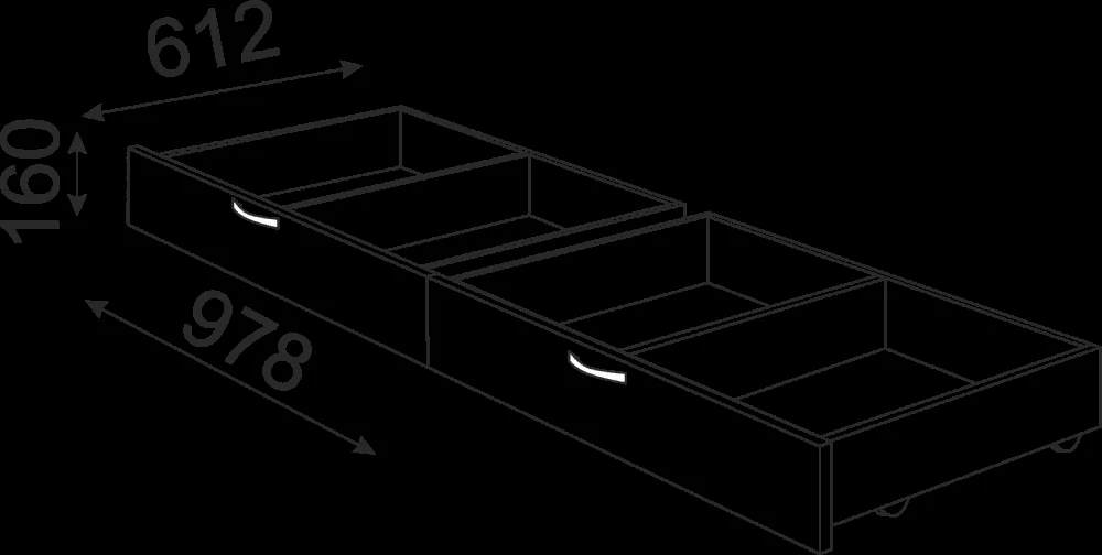 3. Кровать можно дополнить двумя комплектами ящиков М06 (т.е. 4 ящиками) из ЛДСП на колесных опорах для хранения предметов одежды, постельного белья, полотенец и других вещей.