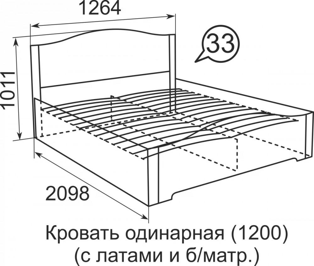 Кровать полутороспальная (1200) с латами «Виктория» №33 в Тюмени