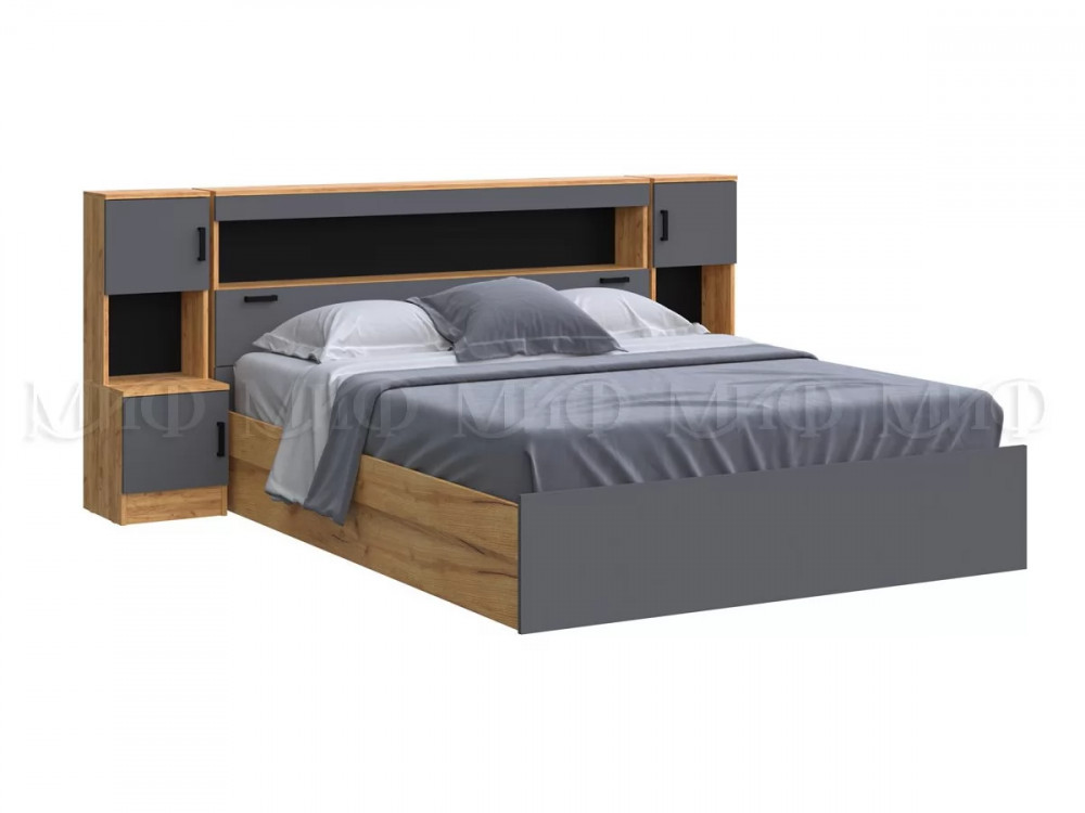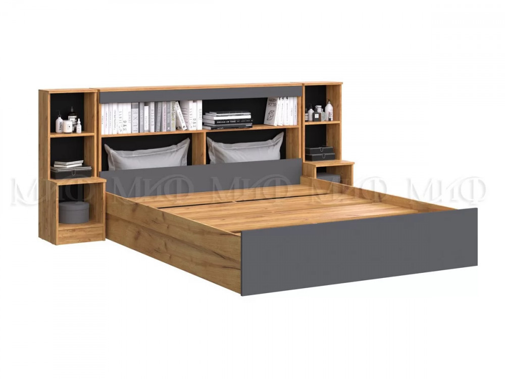 Кровать с надстройкой с тумбами 1600 Басямиф, графит/дуб крафт в Тюмени