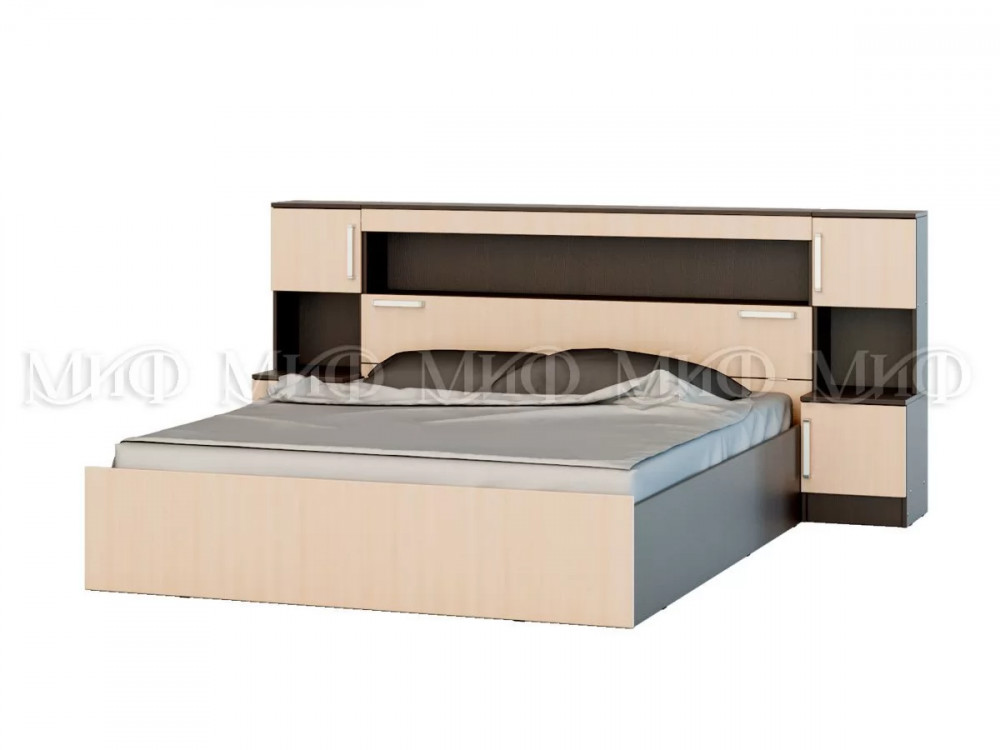 Кровать с надстройкой с тумбами Басямиф 1600, дуб беленый/венге в Тюмени